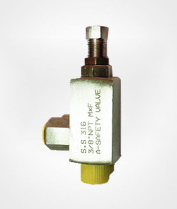 Stainless Steel and Brass Safety Relief Valve, CS/SS 304/SS316. Pressure: Upto 100 bar. Media: Water, Air, Gas.